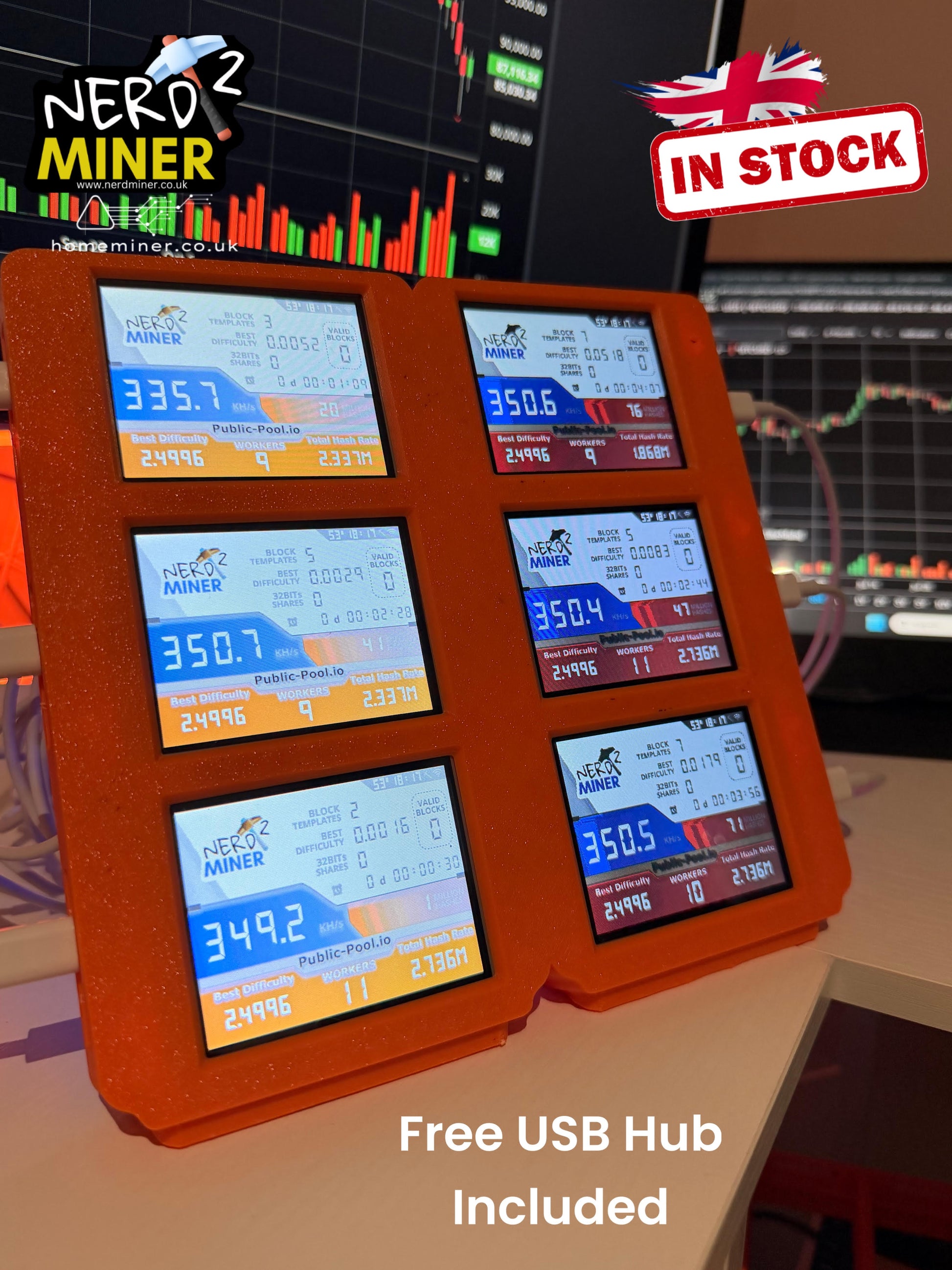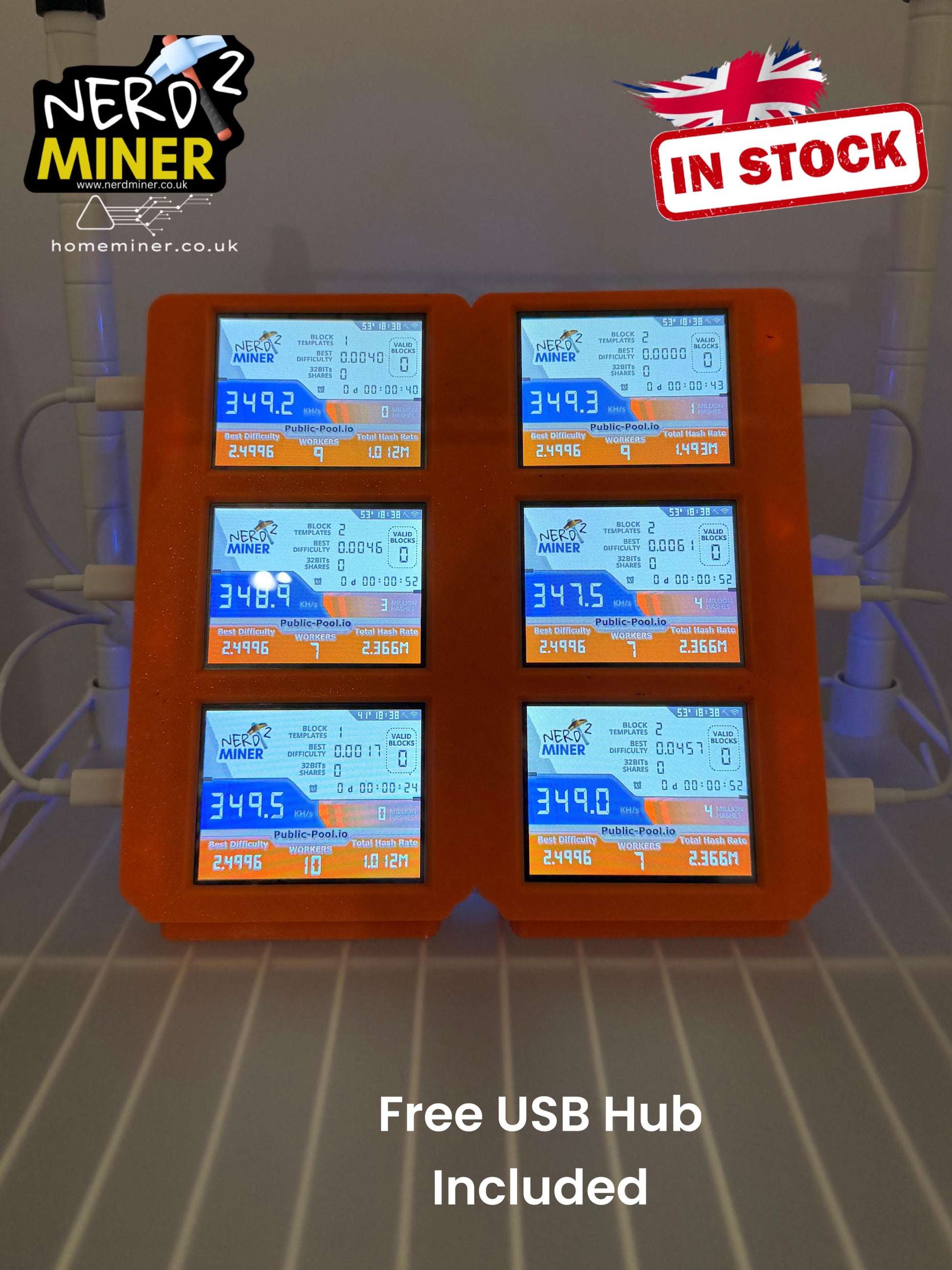 6-Unit Nerdminer V2 Mining Rig – Bitcoin Lottery – USB Hub Included - UK STOCK