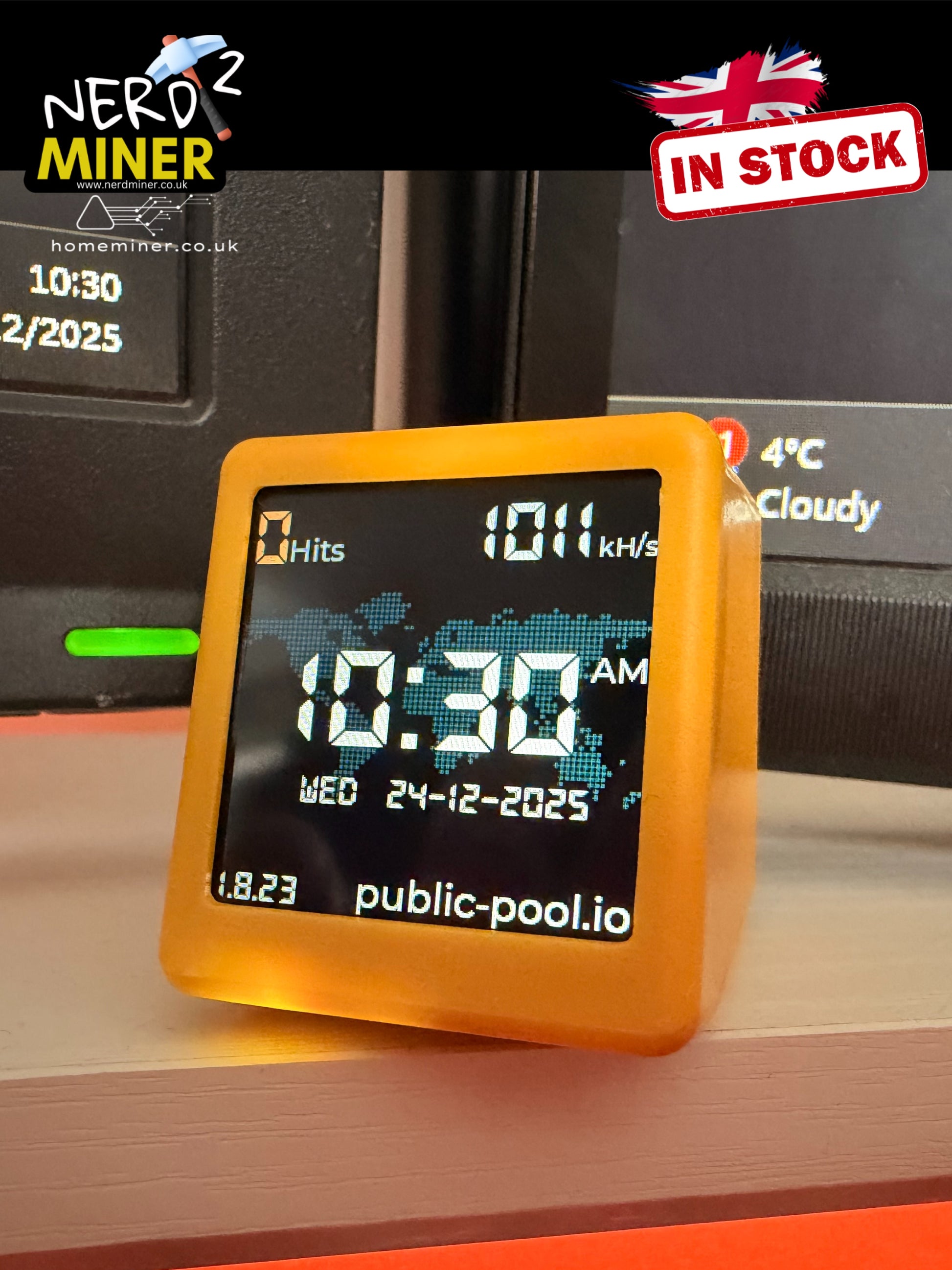 NNMINER NM-TV-154 Bitcoin Solo Miner – Yellow – ESP32 BTC Lottery & Desktop Clock